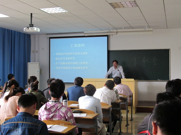 谢宏老师的讲座题目为“基于EEG信号的驾驶疲劳检测方法研究”,主要介绍了(1)EEG信号的采集与特征;(2) EEG信号的特征与大脑疲劳的关系研究;(3)基于EEG信号的疲劳检测模型研究。