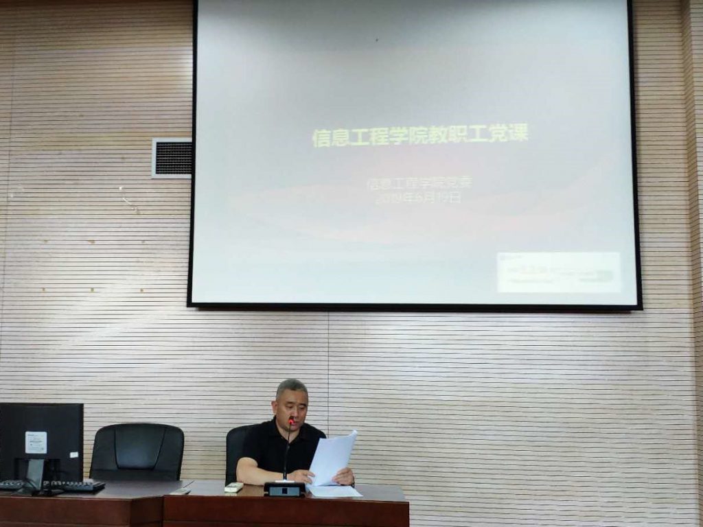 6月19日下午,信息工程学院党委在学院楼235报告厅开展教职工党员集中学习活动,院党委书记胡志武老师主持学习培训,校党委理论宣讲团谢茜博士作为系列学习培训首任主讲,为全院教职工党员讲授“近代上海社会与中共建党”专题党课。