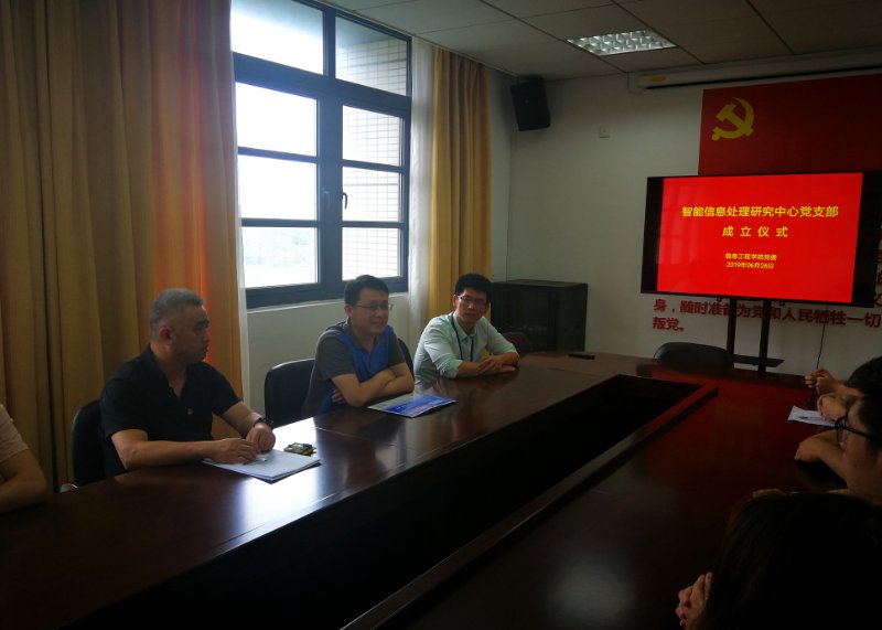 2019年6月26日下午,信息工程学院党委举行智能信息处理研究中心党支部成立仪式,学院党委书记胡志武教授、副院长周日贵教授、团委书记孙冬老师及支部党员同学出席会议。