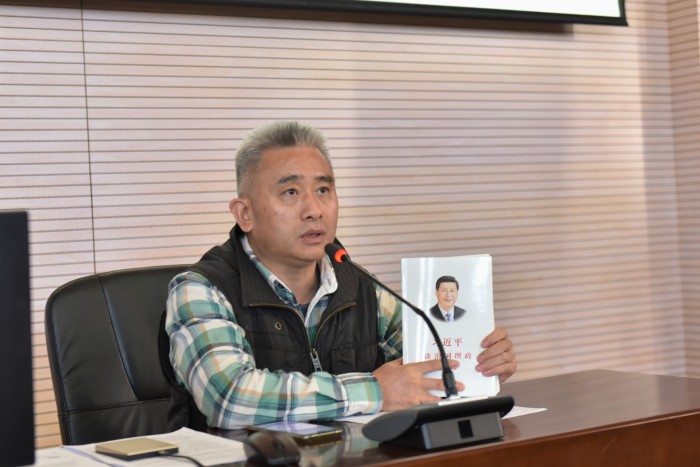 胡志武书记着重梳理、解读了第三卷中的几个重大论断,包括:坚持和加强党的全面领导(专题二),完善和发展我国国家制度和治理体系(专题三),牢牢把握改革开放的“关键一招”(专题六、七),增强忧患意识,防范化解风险挑战(专题八),不忘初心、牢记使命,把党的自我革命推向深入(专题十九)等内容。