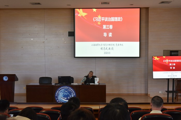 为贯彻落实中央和上级党委关于认真组织学习《习近平谈治国理政》第三卷(以下简称“第三卷”)的通知精神,引导广大教师党员读原著、学原文、悟原理,全面系统掌握贯穿其中的立场、观点、方法,真正用党的创新理论武装头脑、指导实践、推动工作,11月4日下午,信息工程学院党委书记胡志武为全院教师党员上专题党课——《习近平谈治国理政》第三卷导读。