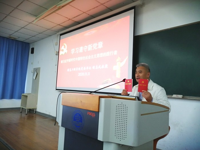 11月11日下午,信息工程学院第34期入党积极分子培训班在教学区顺利开班。学院党委书记胡志武教授为二级党校学员讲开班第一课“学习遵守新党章——做习近平新时代中国特色社会主义思想的践行者”,47名新列入党积极分子参加学习。