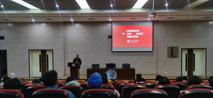 内派教师乔云飞向民族学生分享了自己的学习心得,他勉励学生要珍惜大学时光,不负党和国家的培养,在增长才干的同时不断涵养爱国情怀,严密防范“三股势力”渗透,共同维护意识形态安全,在新的历史起点上,为国家发展和民族团结贡献力量。