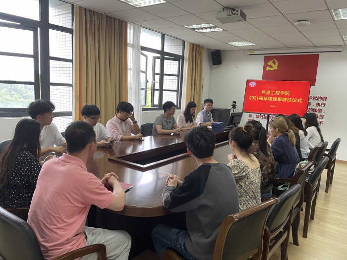 为完善校友工作体系,凝聚校友力量,切实做好校友工作,6月1日下午,信息工程学院在328会议室举行2021届校友年级理事聘任仪式。学院党委副书记、校友会秘书长孙冬,毕业班辅导员以及15位年级理事参加。