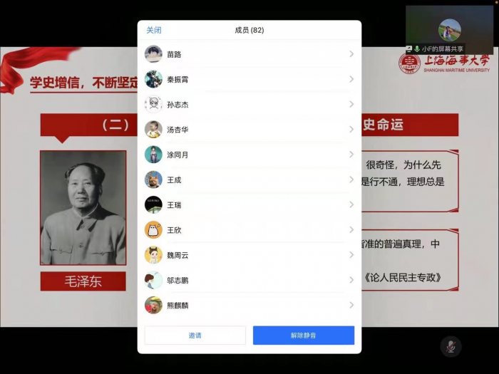 党课的最后刘小帆老师播放了原上海海运学院院长陈嘉震老先生的演讲和影视剧《觉醒年代》蔡元培教授的就职演说。同学们表示,看到老一辈人的砥砺前行,今日的我们作为祖国未来的建设者和接班人,要从党史学习教育中找到人生的榜样,化为成长的动力,努力成长为堪当民族航运强国复兴大任的时代新人,为海洋强国、交通强国做出海大人应有的贡献!