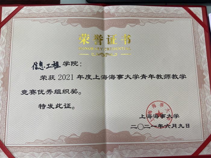 6月9日下午,2021年度上海海事大学青年教师教学竞赛决赛在第三教学区3C101报告厅举行,信息工程学院姚敏博士、杨华博士凭借扎实的知识储备、娴熟的课堂驾驭和出色的现场发挥,获得三等奖,学院获得优秀组织奖。
