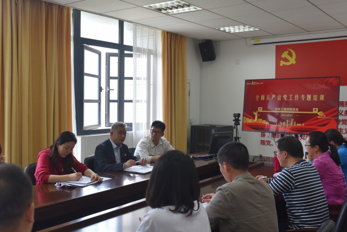 5月7日下午,信息工程学院在328会议室召开全面从严治党工作专题培训会。培训由学院党委书记胡志武、副书记孙冬、专职组织员李荣主讲。全体教师党支部书记和学生党支部书记参加学习。