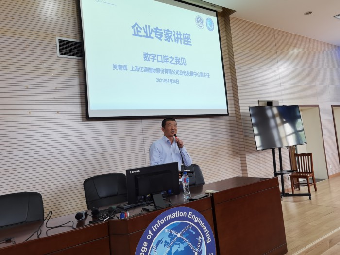 为加强在校大学生职业生涯规划,引导学生到航运、物流等特色行业工作,4月28日下午,我院邀请上海亿通国际股份有限公司业务发展中心副主任贺春辉在信息楼235报告厅作“数字口岸之我见”专题讲座。来自大一到大三的180余位学生参加了本次讲座。