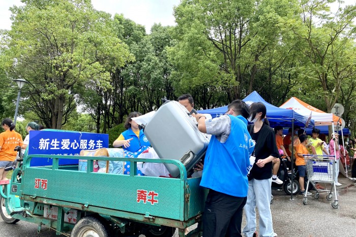 图 8 志愿者为新生搬运行李