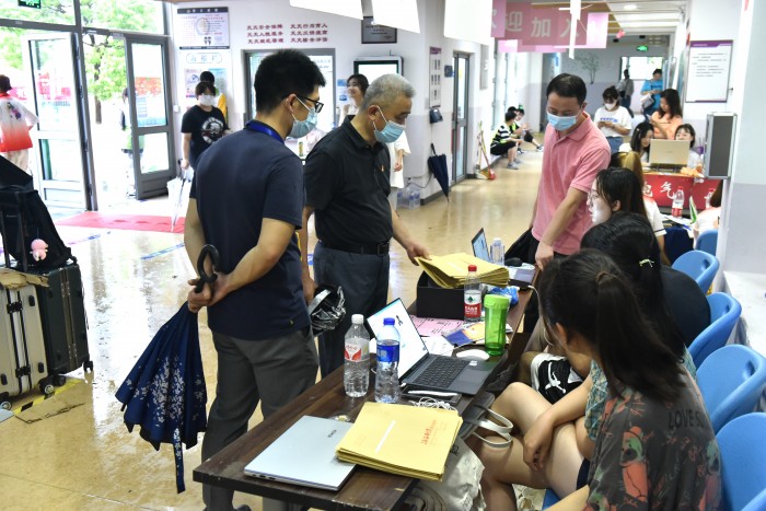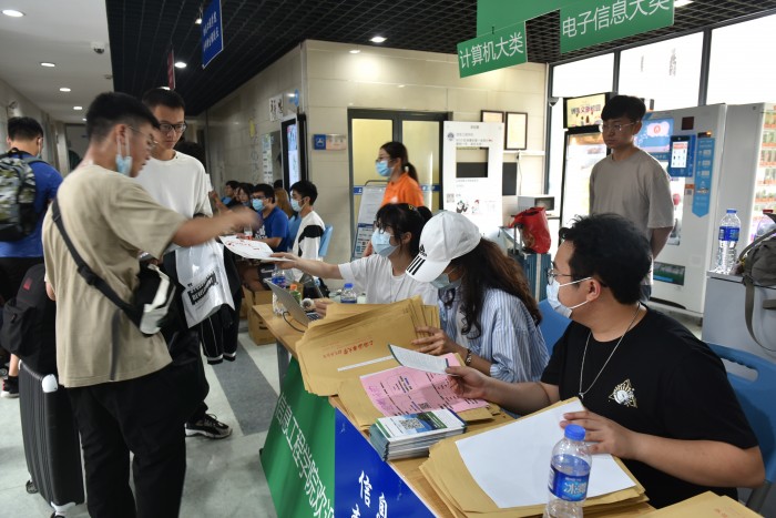图 4 工作人员为学生办理报到手续