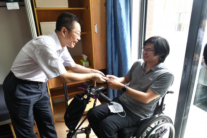 因疫情防控需要,学生家长无法入校,加上报到日阴雨连绵,为报到带来诸多困难。学院组织好志愿者,引导服务新生。热情大方的志愿者冒雨为新生搬运行李,给了远道而来的“新海大人”家一般的温暖。学院新媒体中心还为家长准备了多场“新生入学报到直播”,让不能进校的家长也能了解校园情况,体验网上“云报到”。值得一提的是,学院还为迎接残障学生赵淳愉入校报到做了充分准备,打扫布置了他的宿舍,对床铺等处作了防撞处理,提供一个安全、舒适、温馨的“爱心屋”,为赵同学的大学旅程开了一个好头。