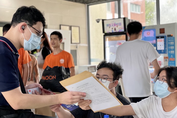 图 5 工作人员为学生办理报到手续
