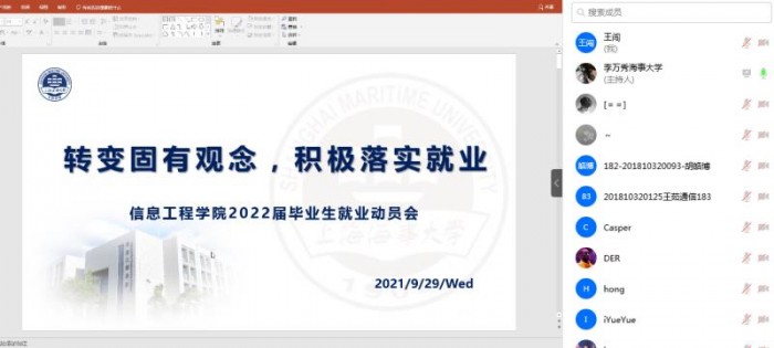 为扎实推进就业工作,助力毕业生高质量充分就业,9月29日下午,信息工程学院召开2022届毕业生就业动员会。院长周日贵教授主讲,就业负责人李万秀主持,学生在线参会。