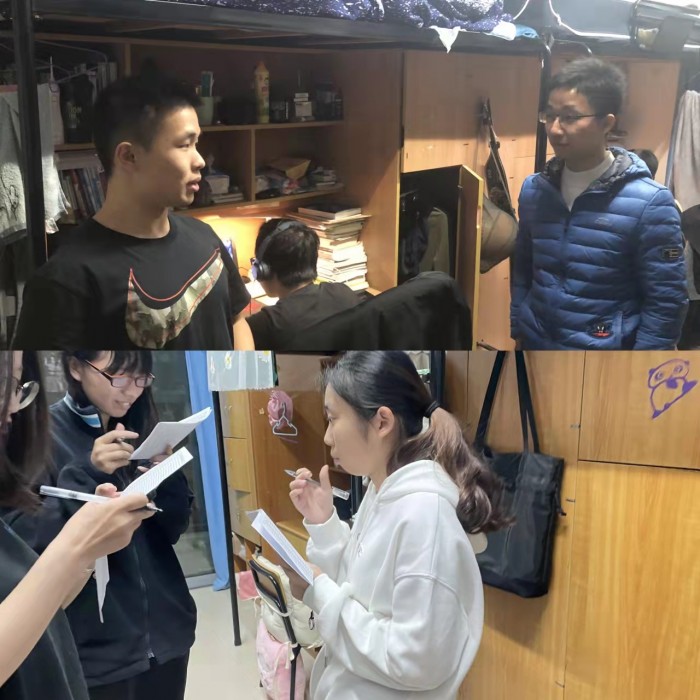 专兼职辅导员深入学生宿舍重点检查安全用电和卫生情况。在检查中,辅导员还向学生通报了近期国内其他高校发生的宿舍火灾事故,提醒同学们要高度重视用电安全,重点检查关注学生宿舍内是否使用违章电器、私拉电线等具有安全隐患的情况。对安全卫生情况良好的寝室,辅导员提出表扬,并要求同学们勤通风、勤打扫,保持宿舍卫生整洁环境。
