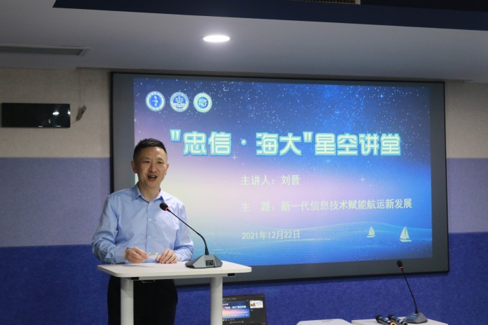 刘晋教授围绕信息技术发展历程、新一代信息技术及其典型应用、信息化赋能航运业的发展等三个方面展开讲座。刘晋谈到,防控网络安全隐患、统筹推进四网融合发展、发展绿色智能船舶、智能船舶配载与航线规划、国际化智能航运体系建设、培养复合型专业人才等是航运信息化的未来发展方向。刘晋提出,航运的信息化、自动化、智慧化发展趋势加快,推动互联网、大数据等新一代信息技术与航运相结合,打造智慧、高效的航运成为大势所趋。