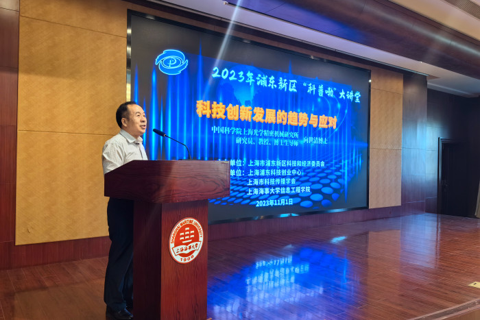 11月1日,由上海市浦东新区科技和经济委员会主办,上海浦东科技创业中心、上海市科技传播学会、上海海事大学信息工程学院承办的2023年浦东新区“科普嘞”大讲堂在校举办。中国科学院上海光学精密机械研究所研究员、博士生导师向世清教授带来题为“科技创新发展的趋势与应对”的专题讲座。