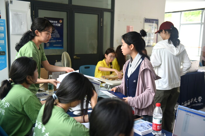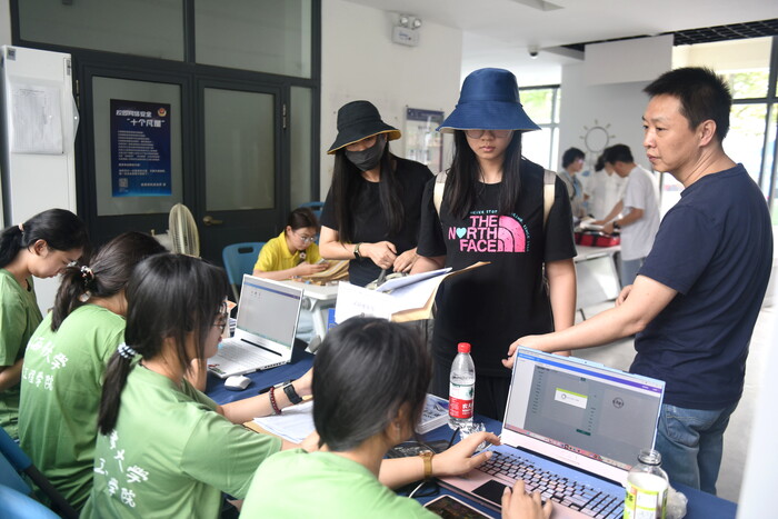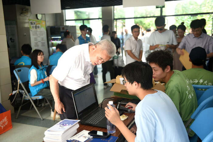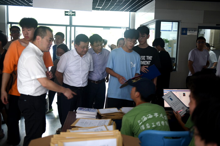 学院党委书记胡志武、院长周日贵来到新生报到点,慰问辛勤工作的志愿者,并鼓励新生要珍惜大学时光,保持学习的恒心,勇于探索未知领域,努力续写海大人奋楫争先的精彩华章。