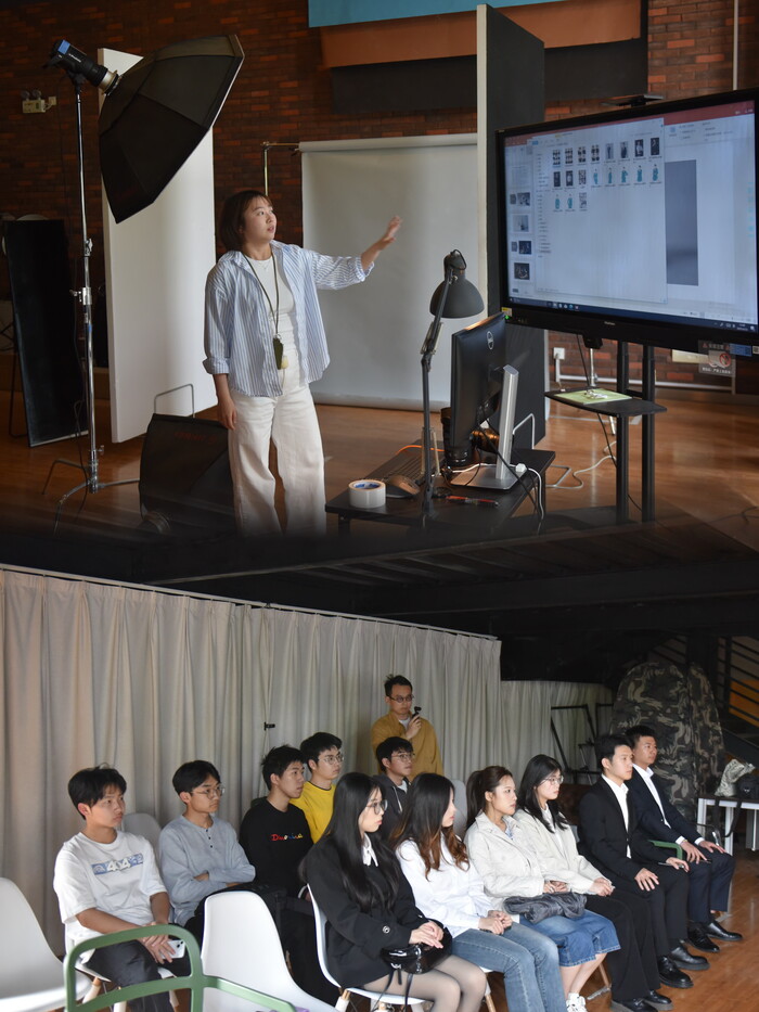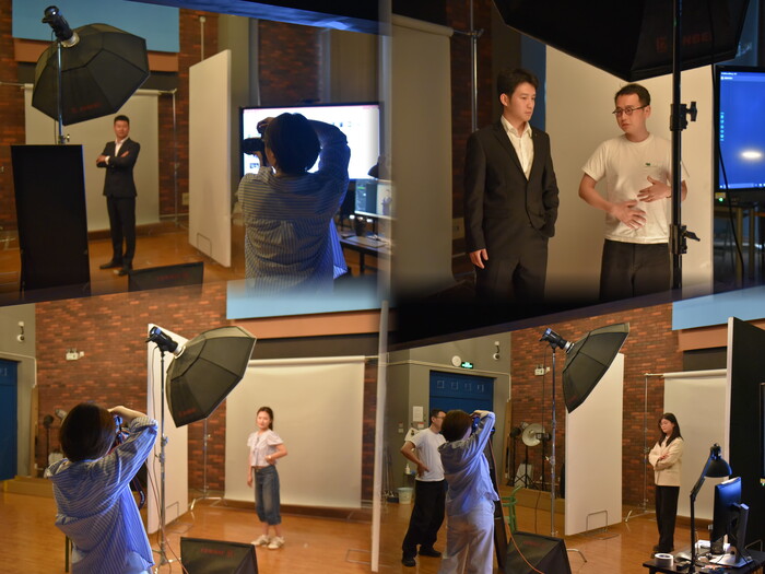 信息工程学院教职工兼职辅导员朱蕊作为本次活动的摄影师,首次尝试在拍摄同时将专业技巧、艺术创意与信息技术相融合,由AI实时辅助优化拍摄角度、光线调控和构图方案,打造专业拍摄+艺术指导+AI赋能的全新服务体系。与传统求职照的单一模式不同,“AI智绘照”将参与照片的后期修复、人像细节优化、色调背景及风格适配等过程,使照片兼具专业性与艺术感。