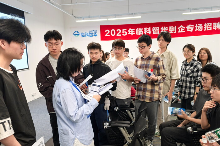 人事经理黄宜系统介绍了临科智华的企业文化、发展历程、核心竞争优势以及在临港新片区人工智能产业链中的关键角色,并详细解读了临港新片区为吸引和留住青年人才推出的各项政策,如优厚的实习补贴、人才公寓保障、便捷的落户通道等。她表示,临港正全力打造世界级人工智能产业集群,对数据科学、算法工程、软件开发等领域的青年才俊求贤若渴,希望能有更多的学生扎根临港、服务临港。