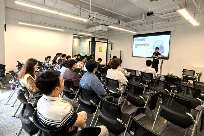 在企业展厅,数据总监李科从基础算法的演进到深度学习模型的突破,从计算机视觉的广泛应用到自然语言处理的革新进展,全景式展现了AI技术如何深刻重塑千行百业,并结合临港新片区聚焦人工智能产业的战略布局,阐述了临科智华在数据处理、人工智能大模型等领域的核心业务与创新实践。期间,师生一行还参观了临科智华的办公区域,近距离感受了人工智能企业的真实工作生态与创新氛围。