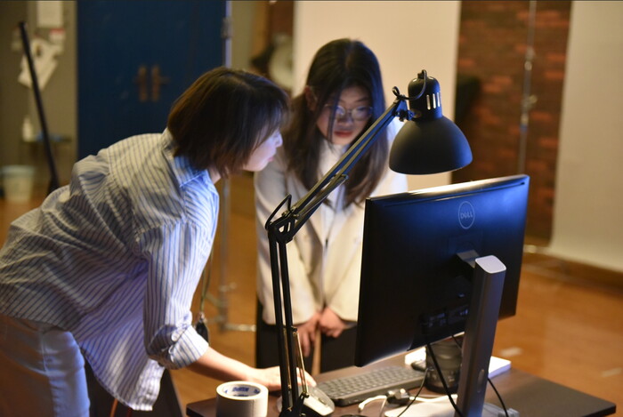 信息工程学院教职工兼职辅导员朱蕊作为本次活动的摄影师,首次尝试在拍摄同时将专业技巧、艺术创意与信息技术相融合,由AI实时辅助优化拍摄角度、光线调控和构图方案,打造专业拍摄+艺术指导+AI赋能的全新服务体系。与传统求职照的单一模式不同,“AI智绘照”将参与照片的后期修复、人像细节优化、色调背景及风格适配等过程,使照片兼具专业性与艺术感。