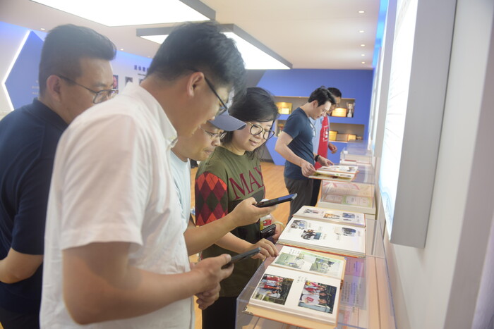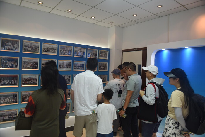 上午,校友们于指定地点集合,以一场温馨的集体合影开启返校之旅。在学院老师陪同下,众人步入235报告厅,走廊两侧的"时光长廊"照片墙引发阵阵惊叹。泛黄毕业照与当下笑容交相辉映,往昔青葱岁月随轻声笑语徐徐展开;在智慧航运通信工程实验室,校友们亲身体验数字化、场景化教学与传统课堂模式的差异,直观感受教学技术革新对专业培养的赋能作用;院史馆内,历史照片与实物展陈串联起学院发展脉络,校友们驻足细览建设历程中的关键节点,在展陈资料中追溯学院变迁轨迹。下午,校友们先后参观校史馆、海大艺术馆及吴淞号特种船,每到一处凝心聆听讲解,细致观赏展品并拍照留念,全方位感知母校发展成就。
