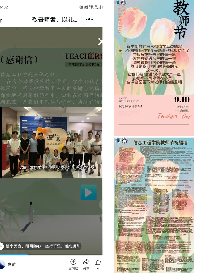 2025年9月10日是我国第41个教师节,主题是“以教育家精神铸魂强师,谱写教育强国建设华章”。饮其流者怀其源,学其成时念吾师,值此之际,信息工程学院开展“敬吾师者,以礼以声”师生同庆教师节活动。