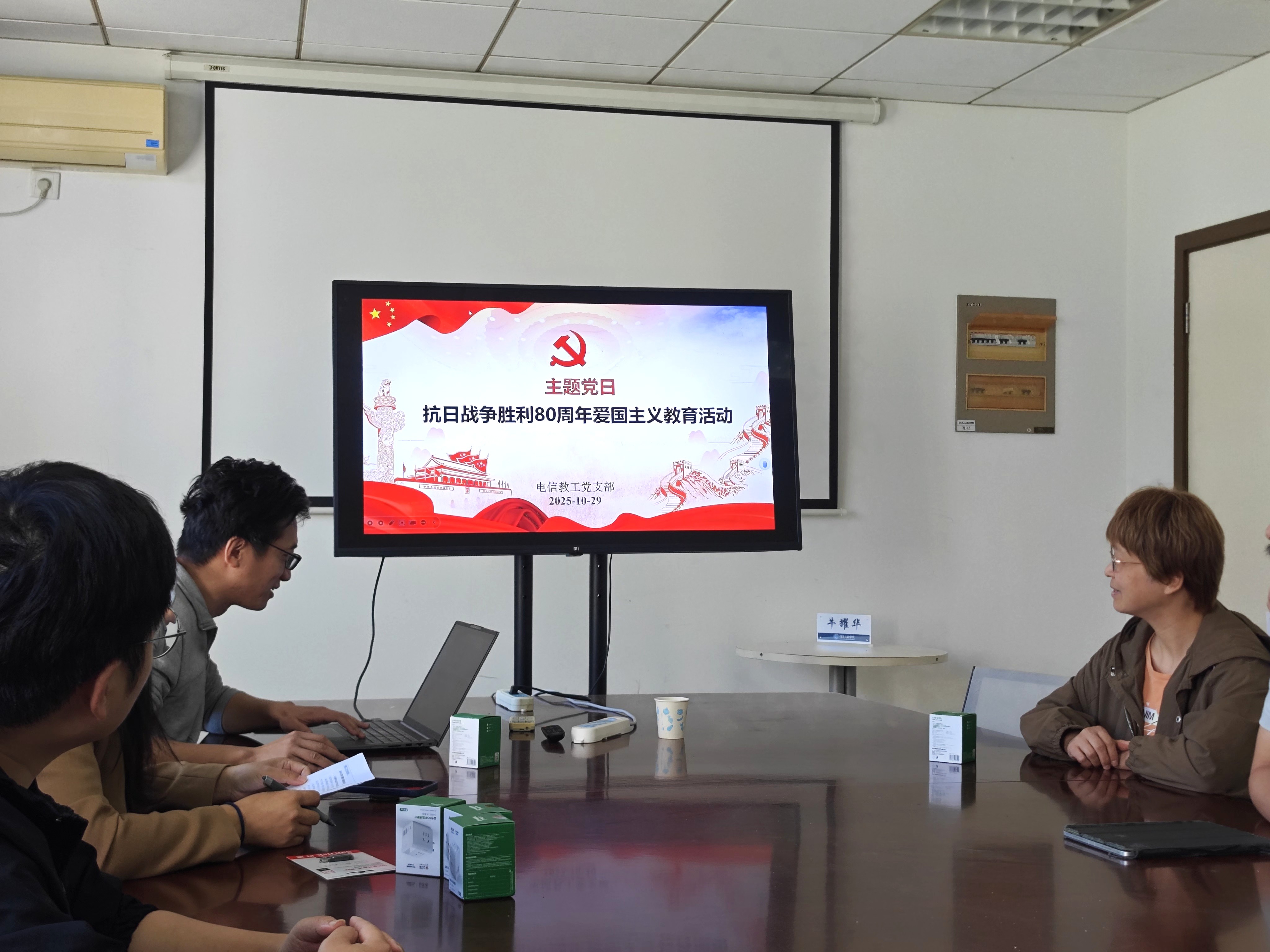 为纪念抗日战争胜利80周年,深切缅怀革命先烈,弘扬以爱国主义为核心的伟大民族精神,强化教师队伍的理想信念与责任担当,10月29日下午,信息工程学院电信党支部举行了“铭记伟大胜利,传承爱国精神”主题党日活动。