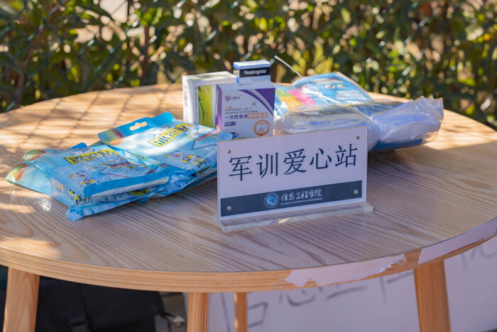 张冬梅书记亲切慰问了在炎热天气下坚持训练的教官和受训学生,她走进学生方阵中与大家亲切互动,对全体人员顶烈日、战高温的坚韧品格给予了高度评价,为教官和学生送上消暑冷饮。此外,信息工程学院还设置了“军训爱心站”,为受训学生提供帮助。