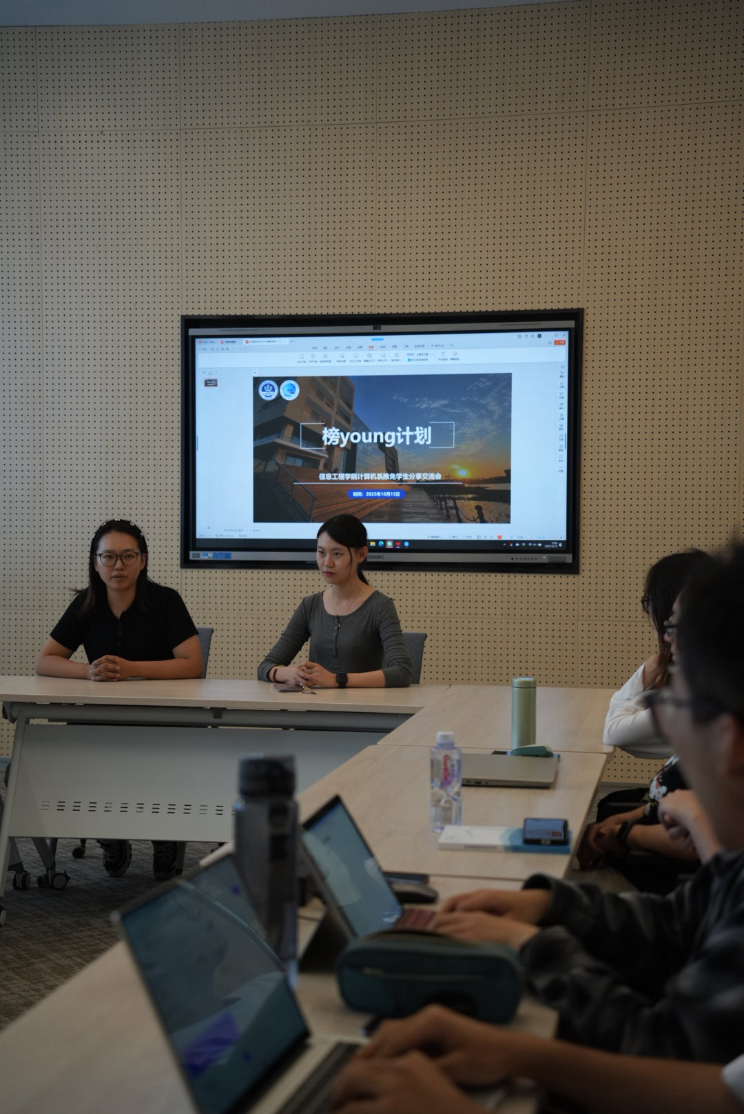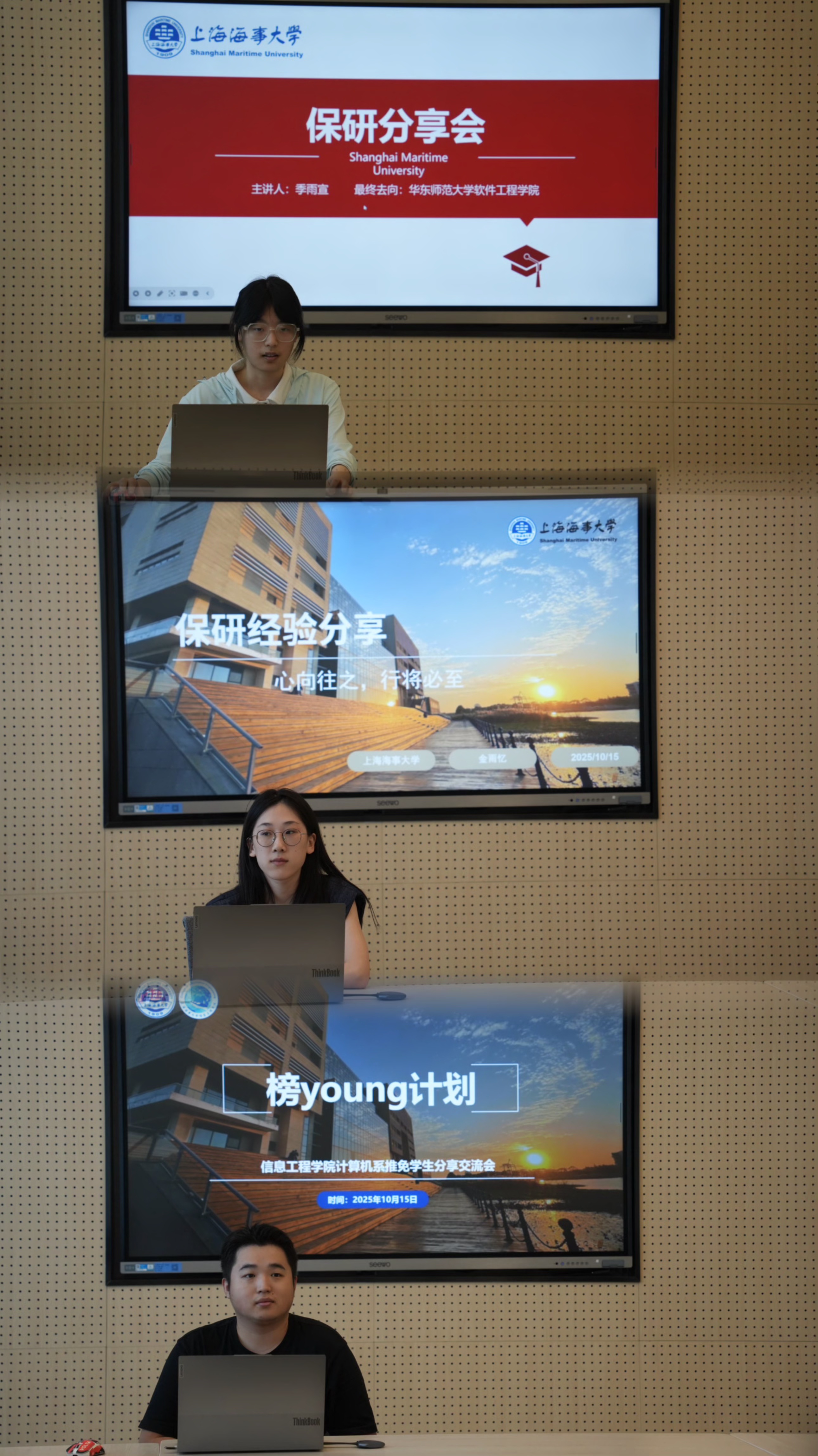 前期筹备阶段,23级辅导员调研年级学生需求,梳理出了“政策解读、科研准备、院校选择、申请流程”等核心疑问;22级辅导员则结合所带学生推免优势,筛选出三位覆盖不同推免方向的优秀学子,并协助梳理其经验亮点,形成“需求-资源”精准匹配的分享框架。活动现场,由23级辅导员王盛楠老师主持,在22级辅导员王旻硕老师的协助下,三位来自计算机系2022级的推免优秀学子依次为学弟学妹带来干货满满的经验分享。
