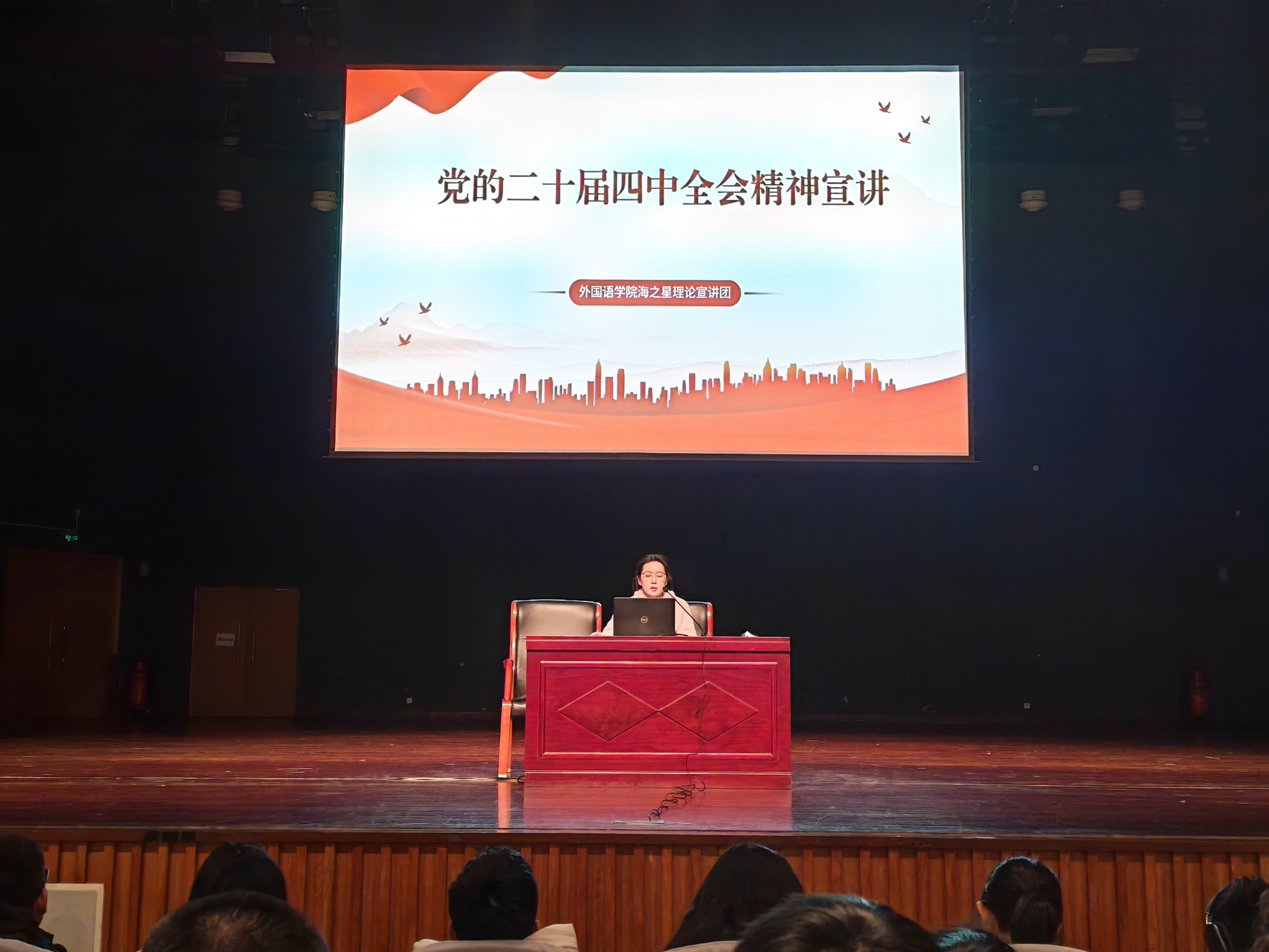 为深入学习贯彻党的二十届四中全会精神,12月期间,学院邀请学校习研会、海韵·红帆、海之星三个校级理论宣讲团在学院各年级、各专业学生中开展了党的二十届四中全会精神专题宣讲活动。