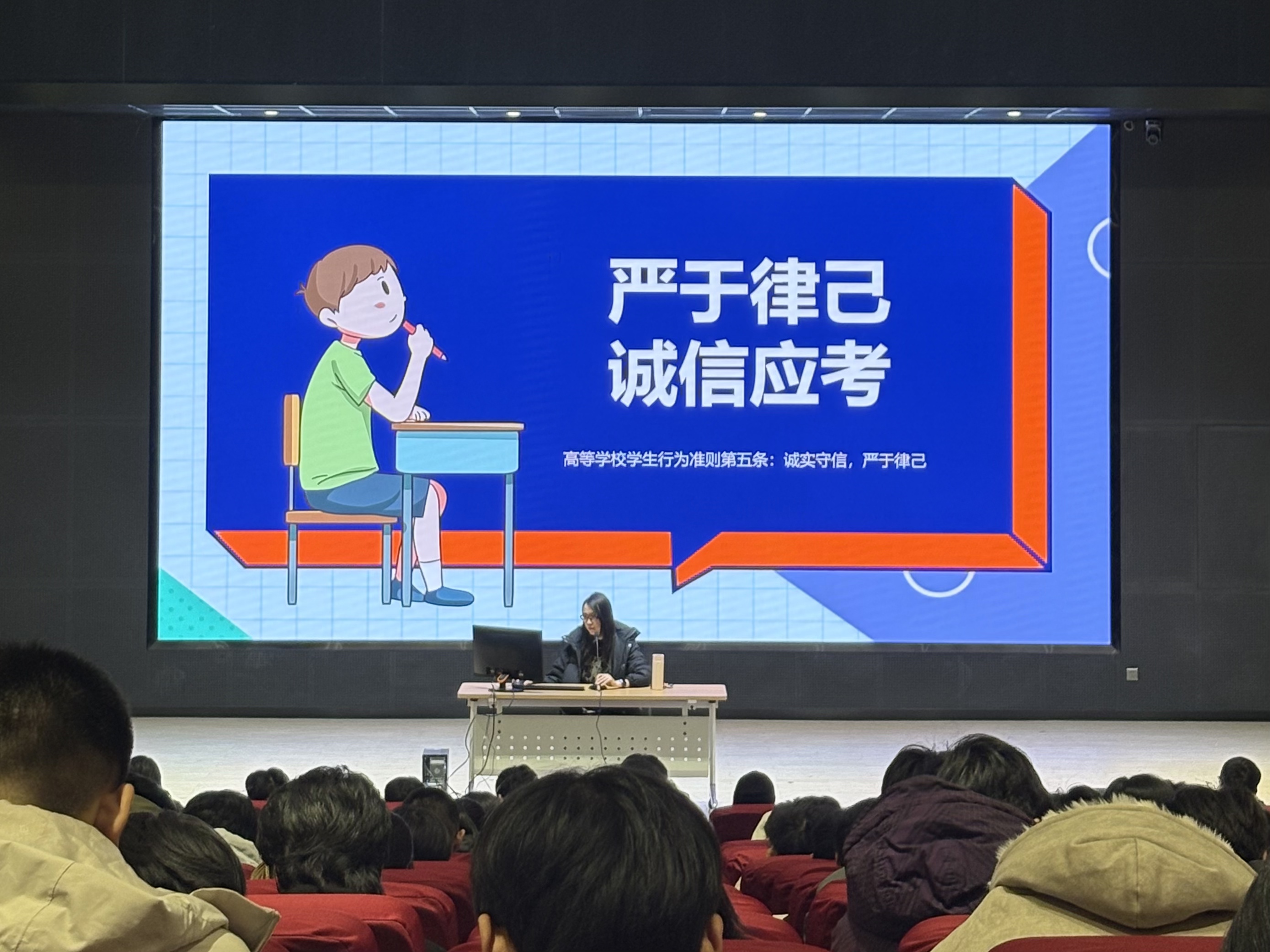 活动中,各年级辅导员聚焦校规校纪核心要求,对考场违规行为界定、考试作弊处理办法等关键内容进行了系统解读与详细说明,帮助学生深刻领会诚信考试的内涵与重要意义。同时,辅导员们结合身边真实作弊案例,深入剖析考试作弊对个人学业、声誉及长远发展的严重危害,让学生们直观感受到作弊行为带来的惨痛代价。此外,着重强调了期末考试期间的纪律要求,明确禁止携带手机等电子设备进入考场,严禁任何形式的作弊行为,引导学生合理规划复习时间,制定科学的备考计划,扎实做好考前准备。