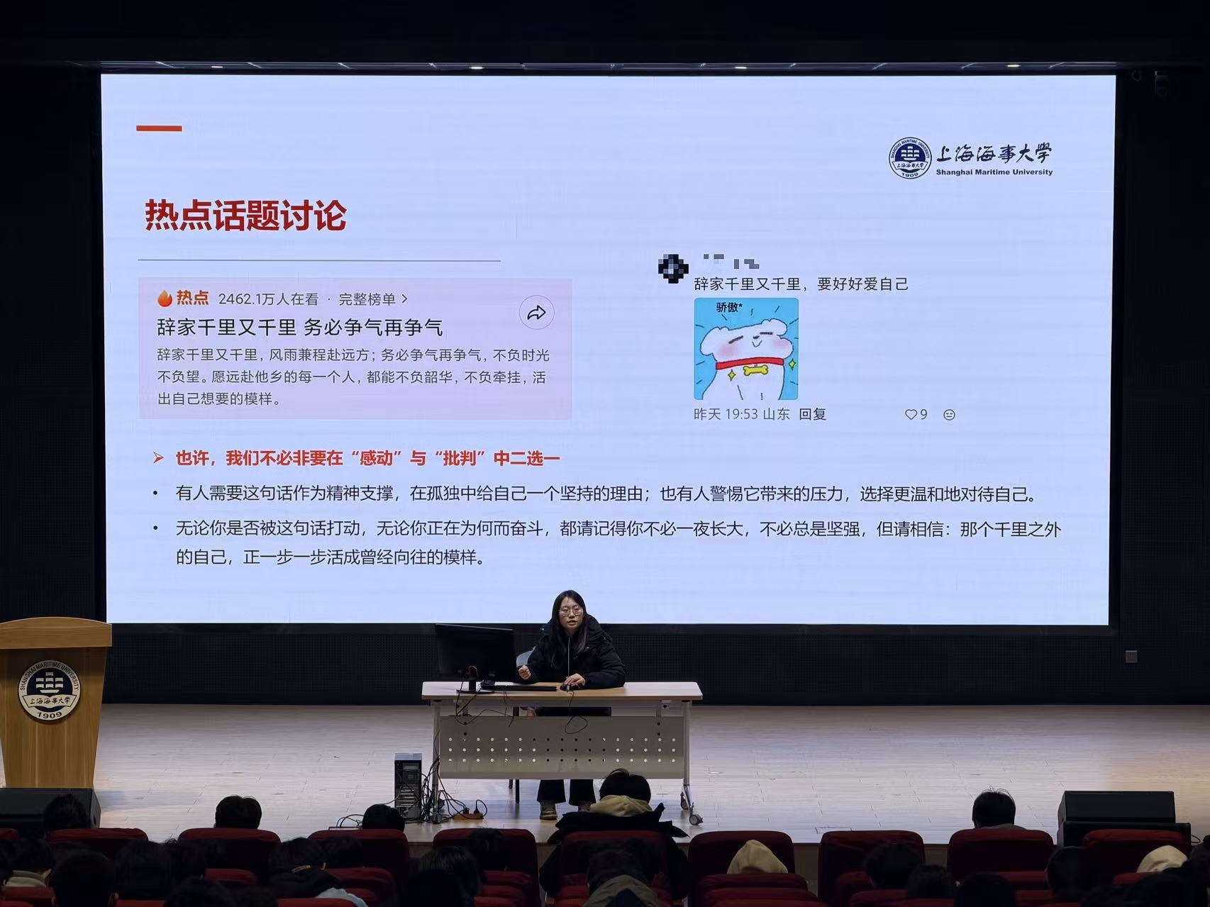 在安全教育的基础上,王老师结合网络热议话题“辞家千里又千里,务必争气再争气”,延伸至学生成长话题展开深入引导。她谈到,这句话既是无数青年学子奔赴远方的青春誓言,也是承载着期盼与奋斗的人生注脚。面对这一话题,不必陷入“感动”与“批判”的二元对立,而应学会辩证看待——于部分同学而言,这句话是独在异乡时的精神支撑,是迷茫困顿中坚持前行的动力;于另一部分同学而言,也需警惕 “争气”背后可能滋生的过度压力,学会以温和的态度接纳自身的节奏与状态。奋力前行的路上,个人的拼搏离不开完善的支持体系。学院将持续搭建心理关怀、学业帮扶、生活保障多维平台,让每一份“争气” 的初心,都能在安全、包容、温暖的校园土壤中生根发芽,助力同学们在成长路上走得更稳、更远。